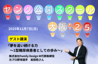 ゲスト講演「夢を追い続ける力 ~1型糖尿病患者としての歩み~」 大阪糖尿病協会顧問医会では、若い世代の糖尿病をもつ方に向けたイベント「ヤング公開スクール」を行っています。このイベントでは糖尿...