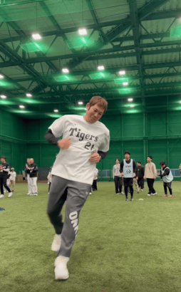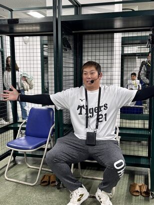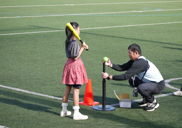 野球体験教室ではタイガースアカデミーから桑原謙太朗コーチ、大迫玲奈コーチにも参加頂き一緒に野球指導してもらいます。
